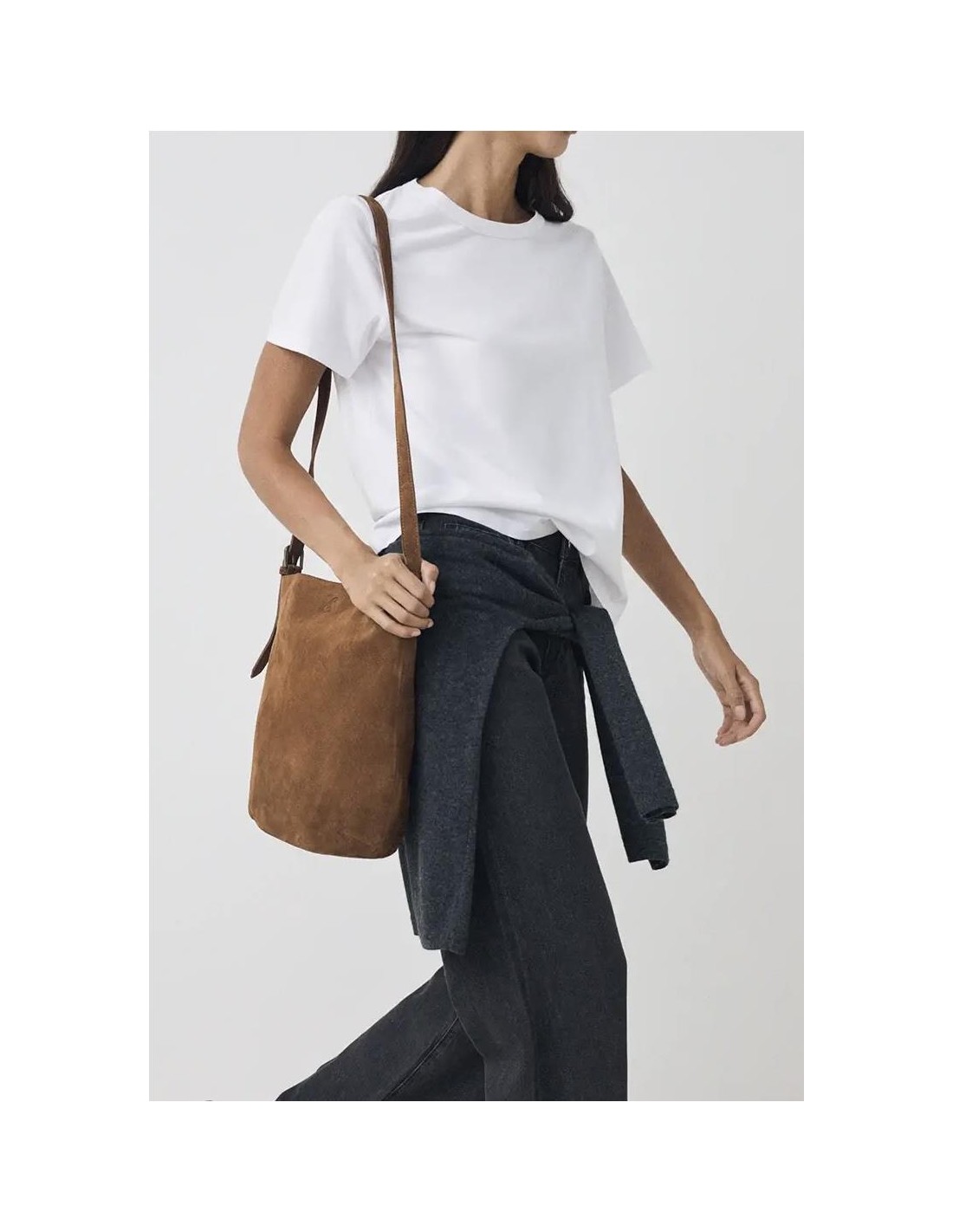 Bolso de hombro o cruzado en piel de serraje en color camel.