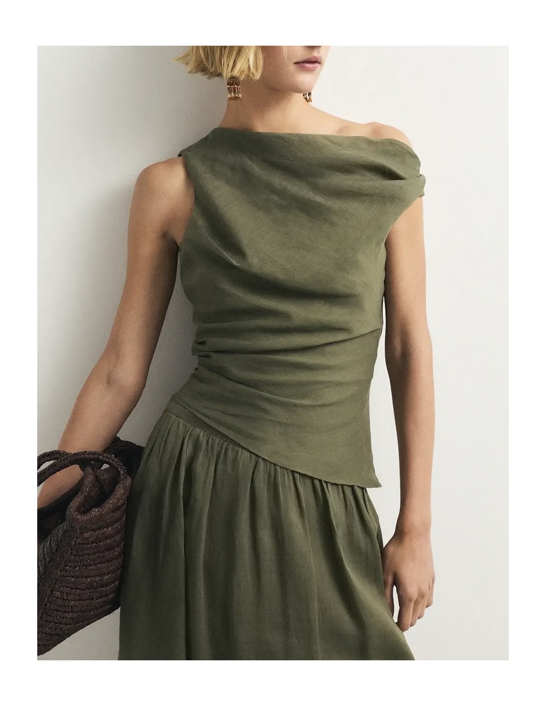 Top drapeado al puro estilo griego confeccionado con ramio, una fibra natural que te encantará.