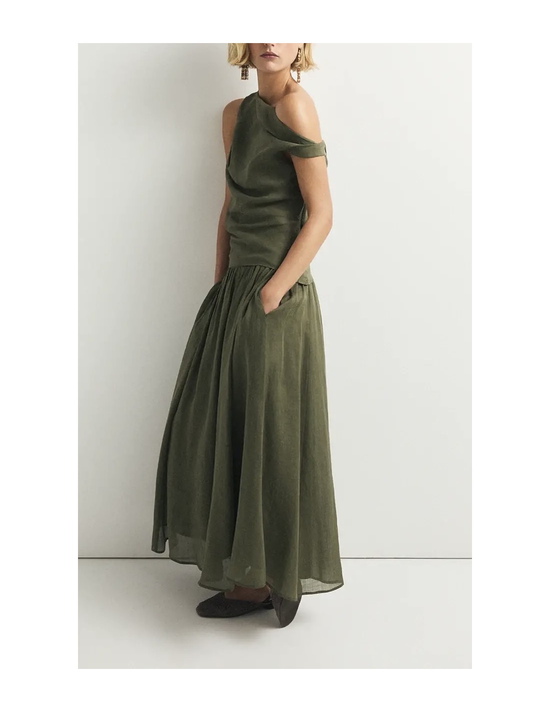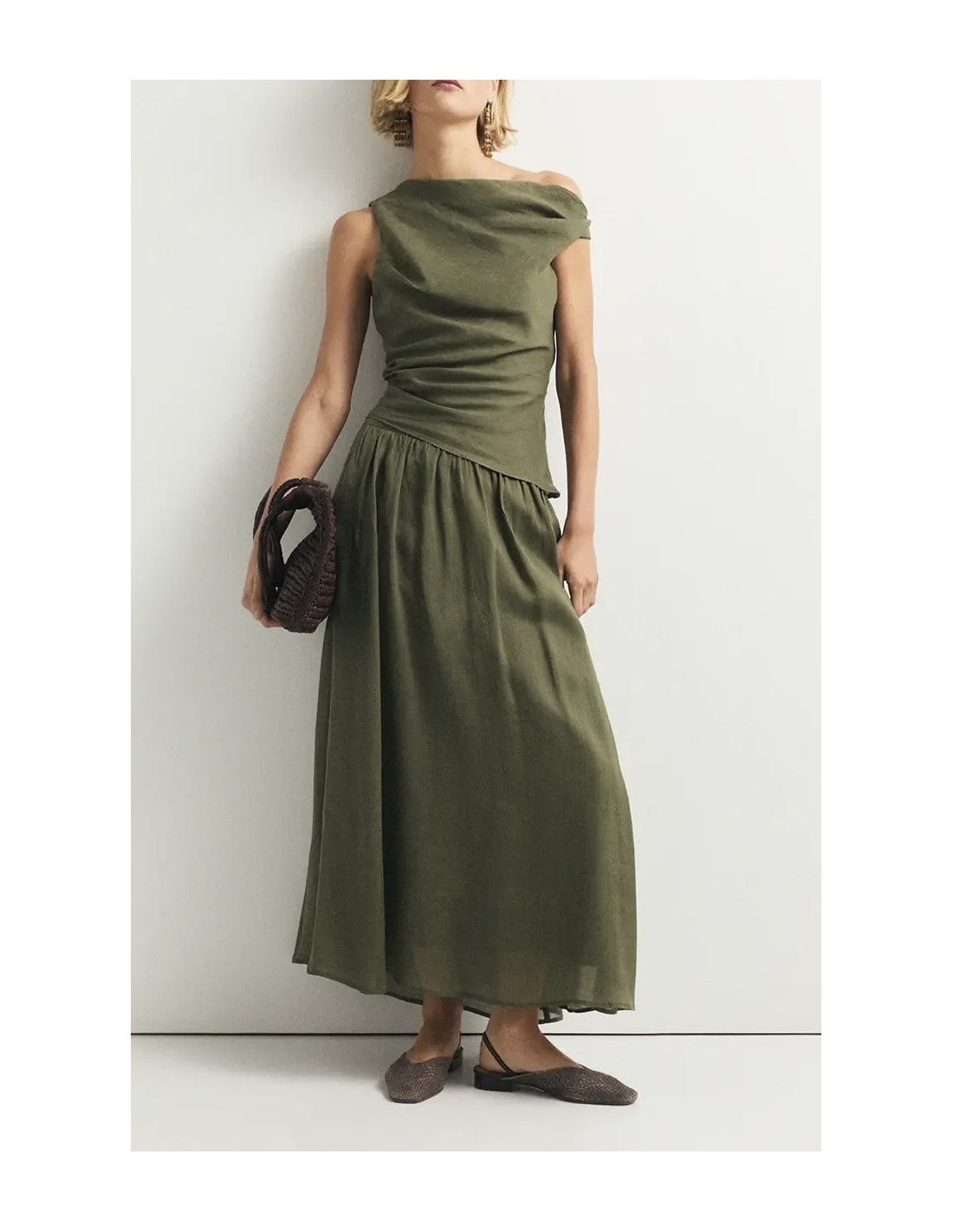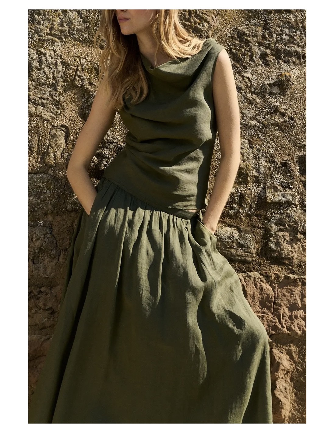 Falda de ramio y forro en algodón. Textura natural y ligera.