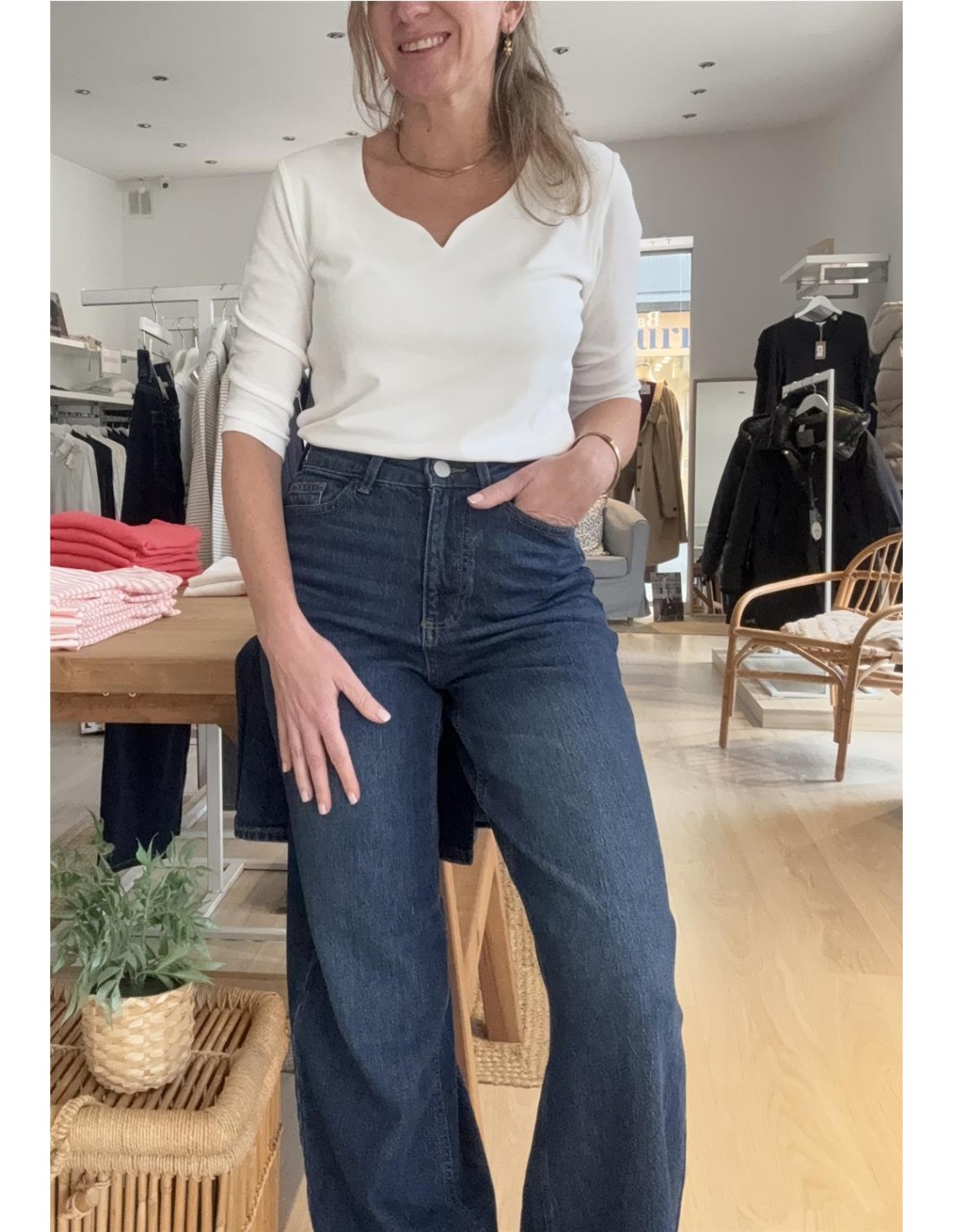 Camiseta manga 3/4 con escote de corazón.
