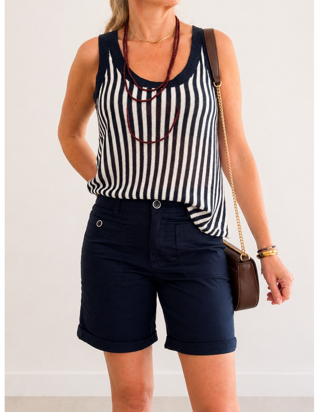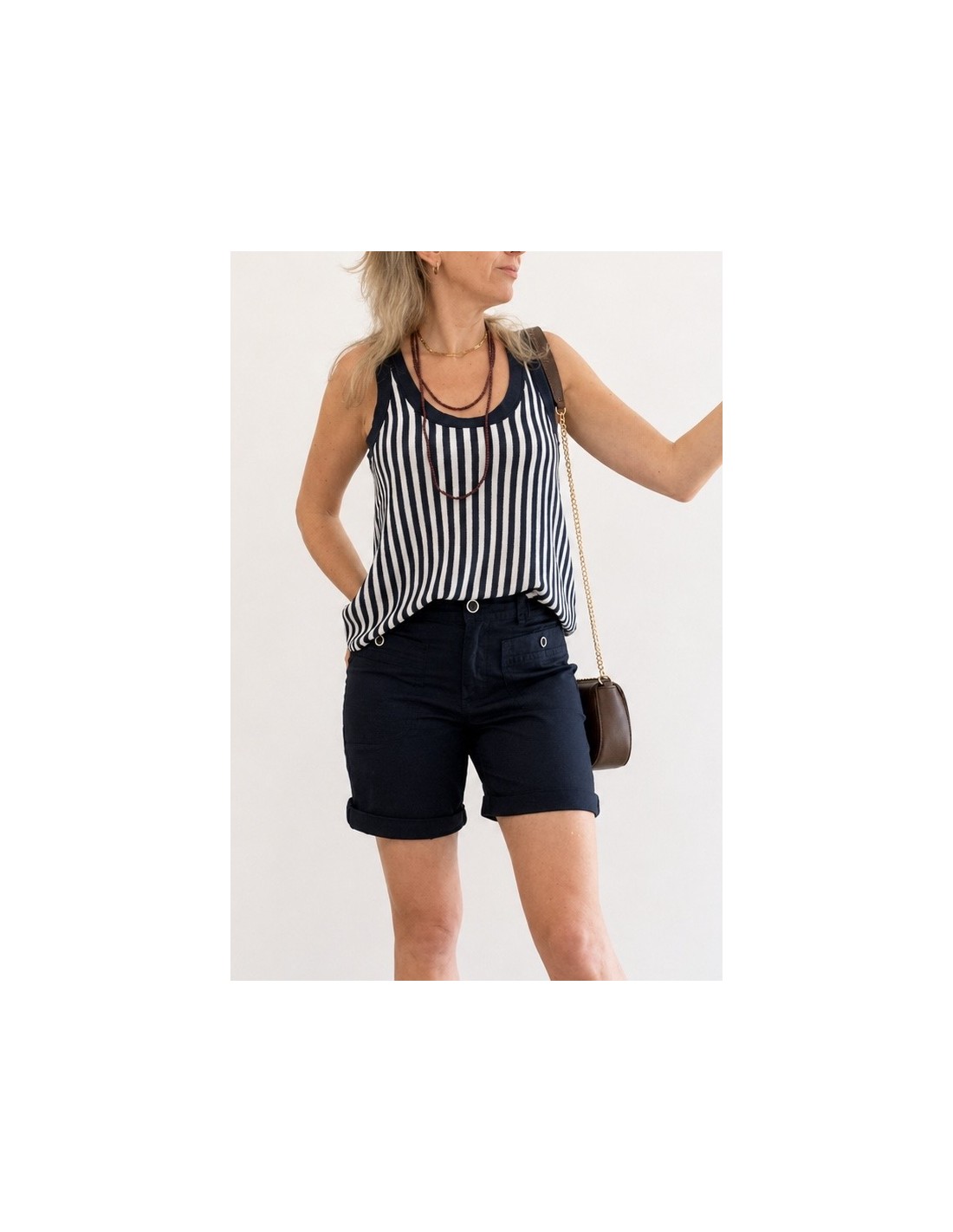 Bermuda en algodón con detalle de botones, fresca y cómoda.