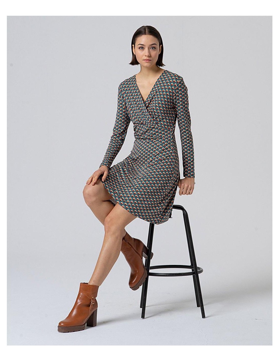VESTIDO CRUZADO ESTAMPADO VERDE